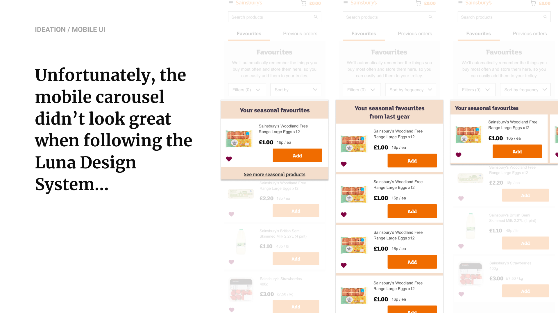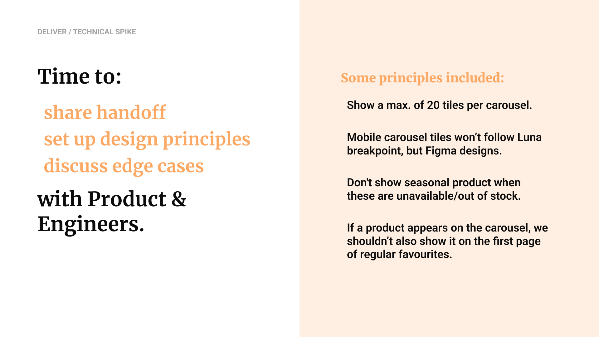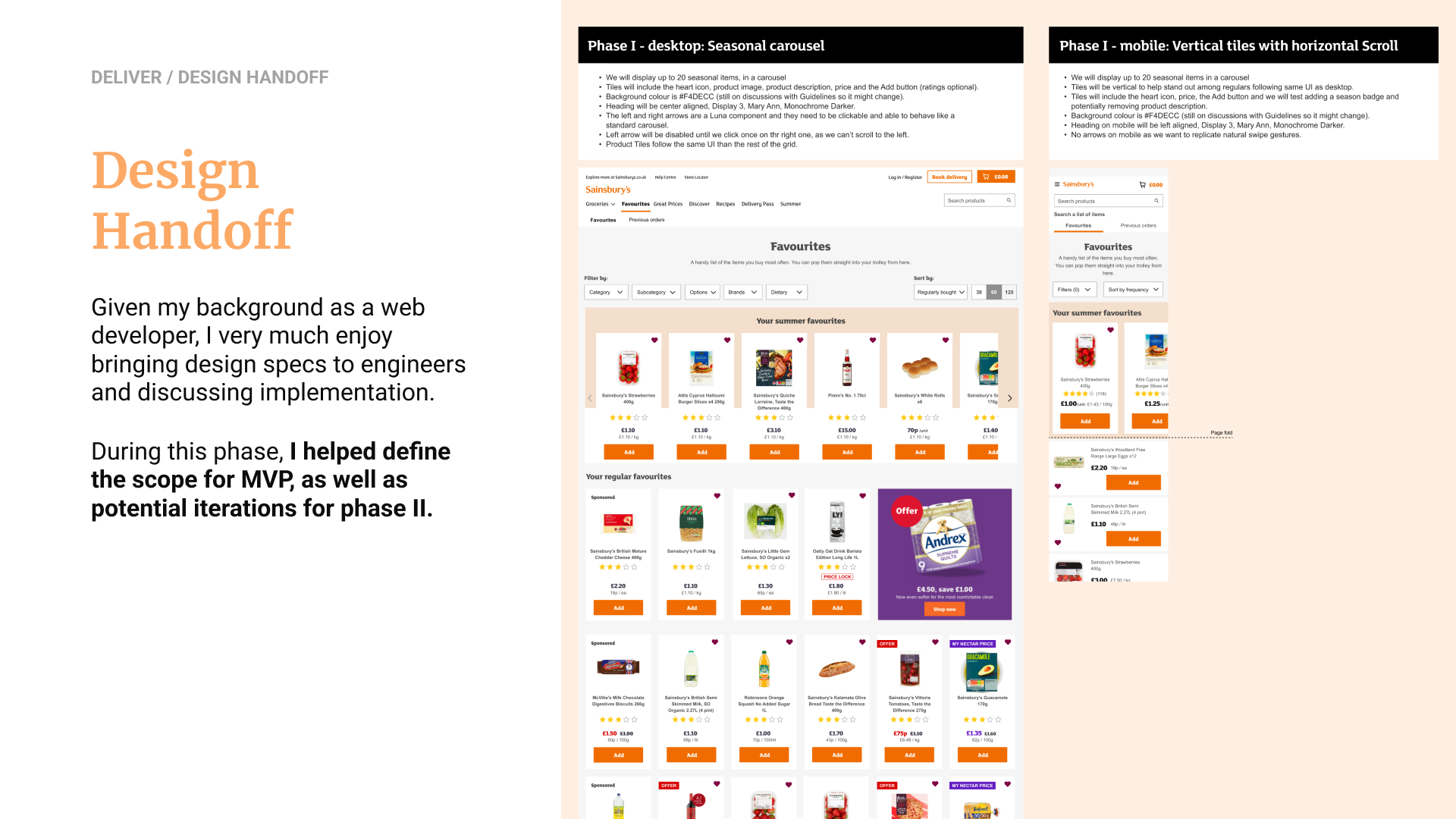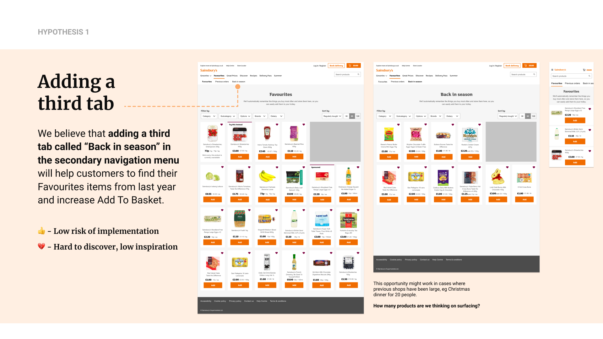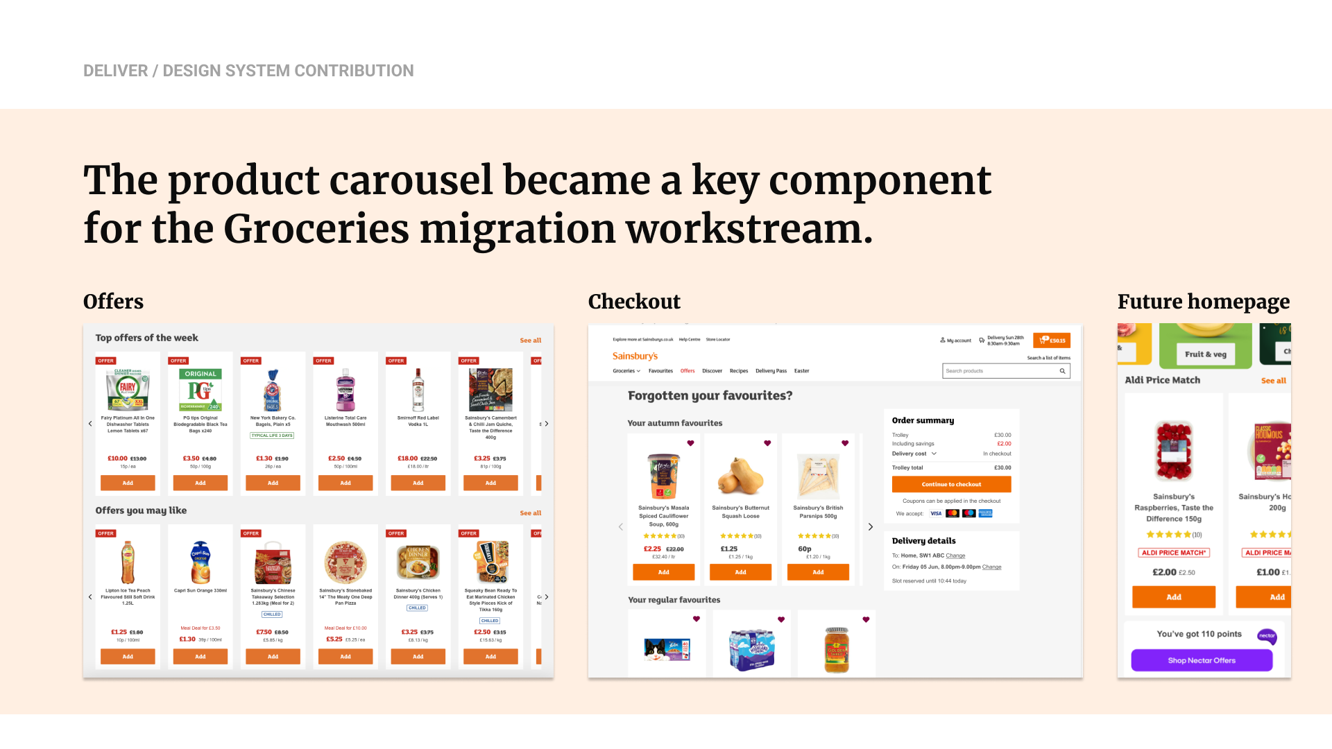 I designed and launched the Seasonal Favourites carousel, used in 35% of customer sessions in its first quarter and increasing seasonal participation from 5% to 25%.