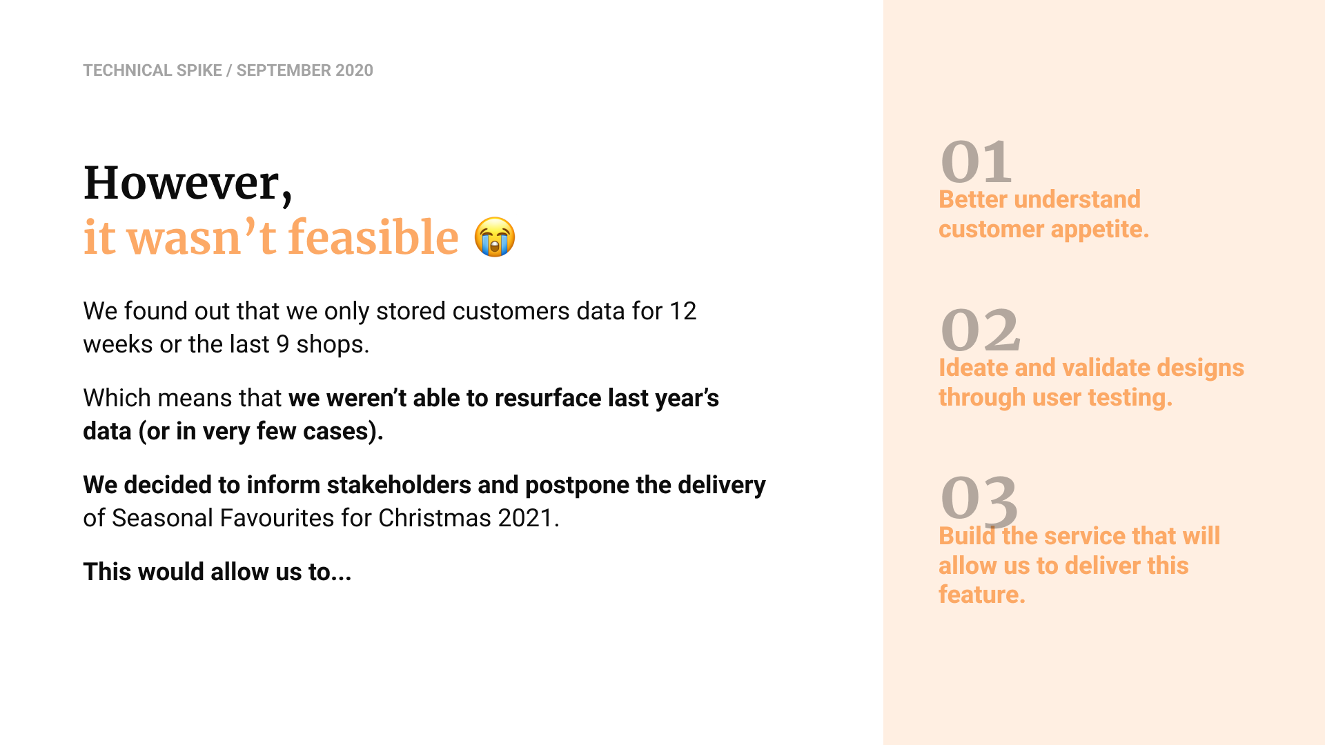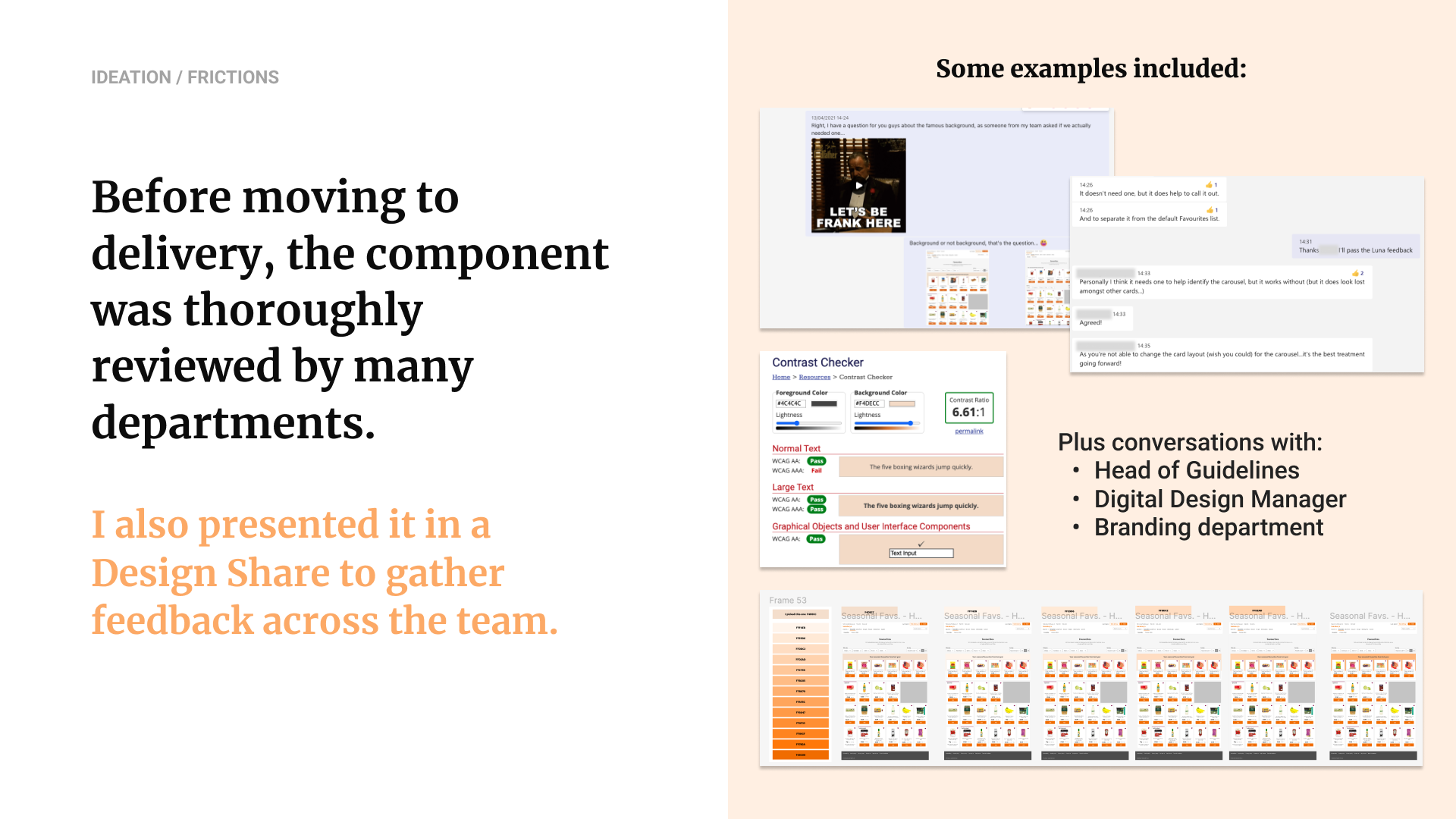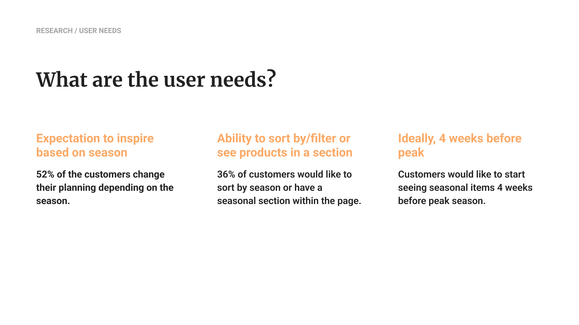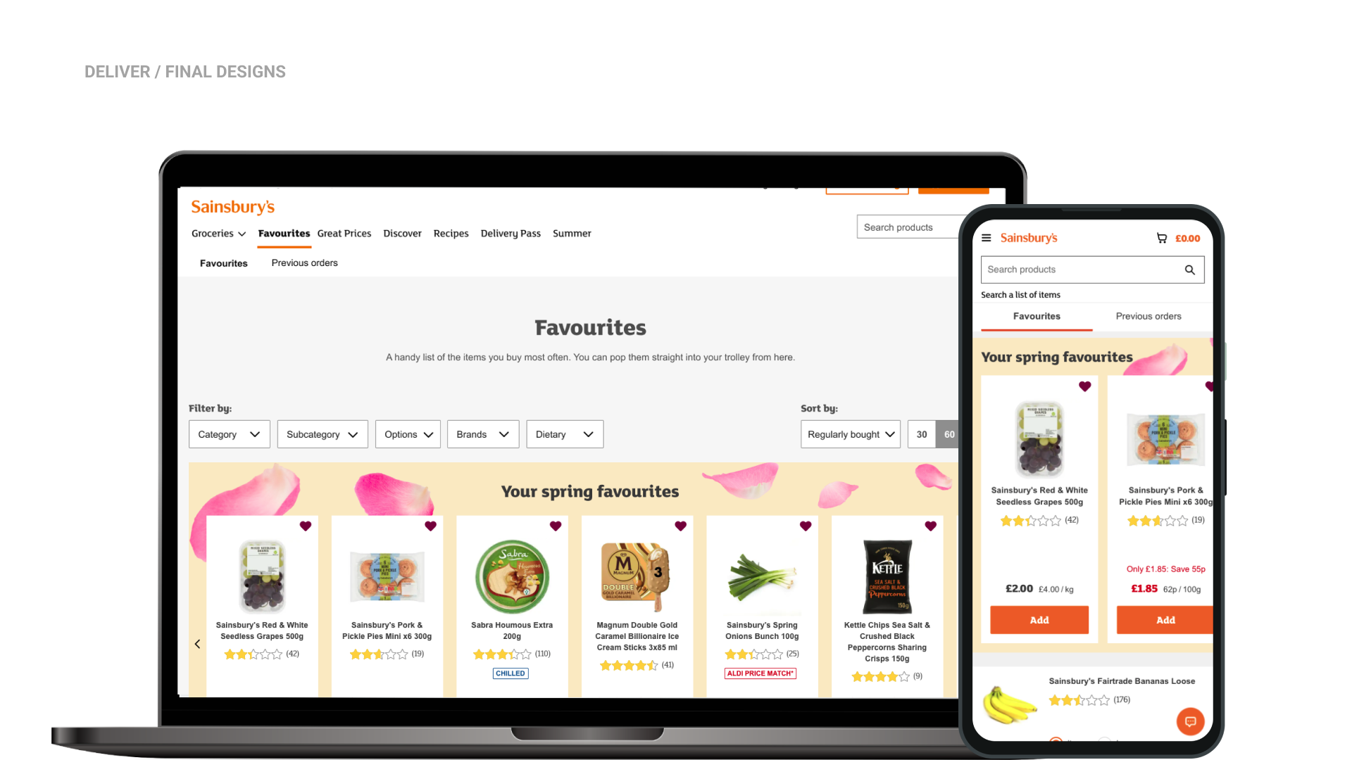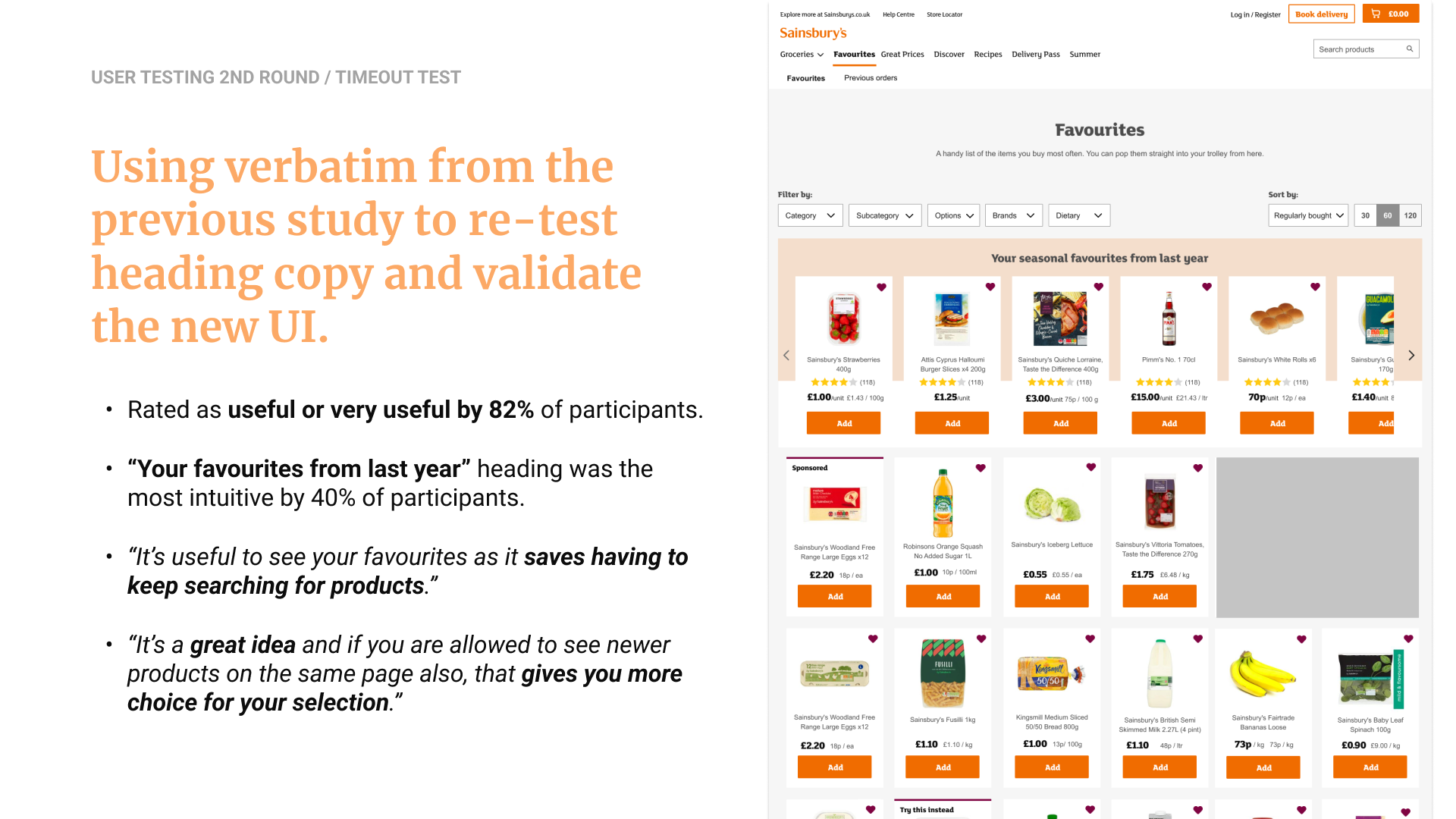 I designed and launched the Seasonal Favourites carousel, used in 35% of customer sessions in its first quarter and increasing seasonal participation from 5% to 25%.